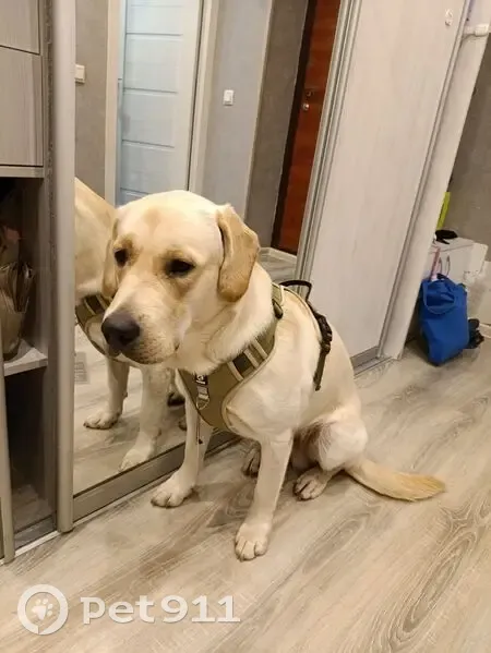 Кобель, палевый. Зелёная шлейка. Молодой, игр...