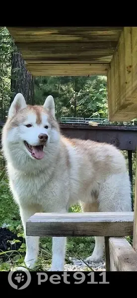 Взрослый хаски. Окрас рыжий. В ошейнике, но м...