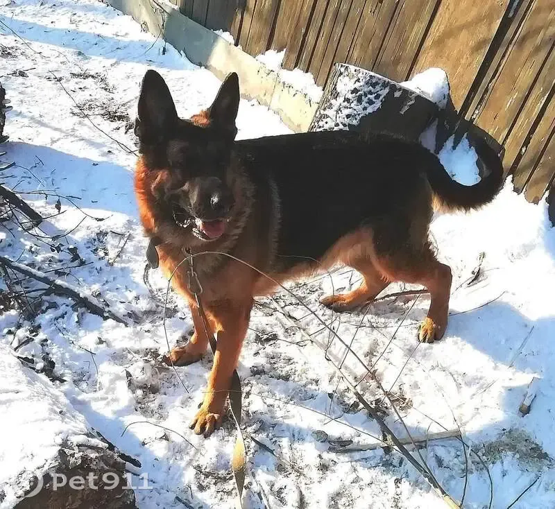 Черно рыжый окрас, вырвалась с ошейника и убе...