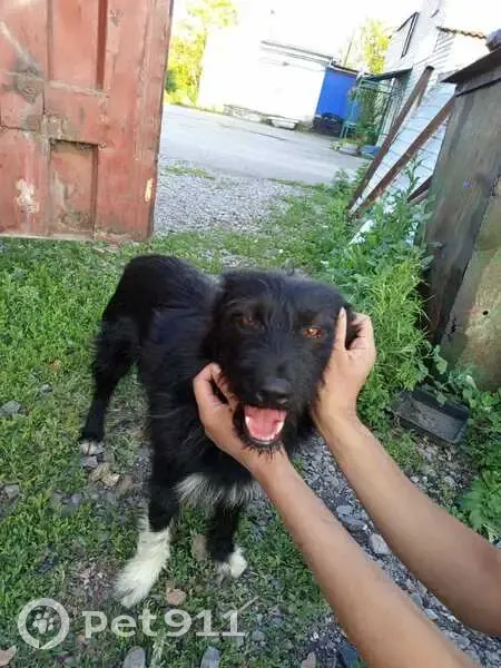 Собаки потеряшки, Белово, фото: Потеряшка собака, Белово - лохматый чёрный пёс с белой лапой