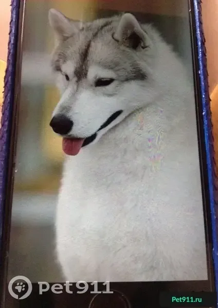 Убежал серо- белый хаски в красном ошейнике и...