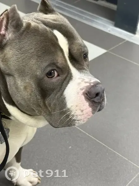 Зовут Тайсон. На ошейнике имя и метка с куар...