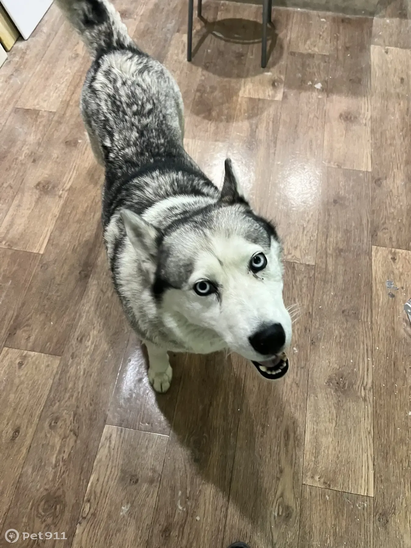 Собаки потеряшки, Тюмень, фото: Потеряшка собака хаски возле ошейника, Центральная улица, Тюмень