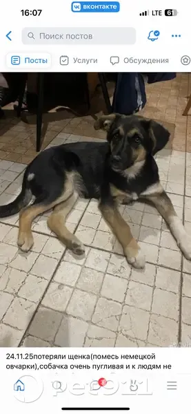 24.11.25потеряли щенка (помесь немецкой овчар...