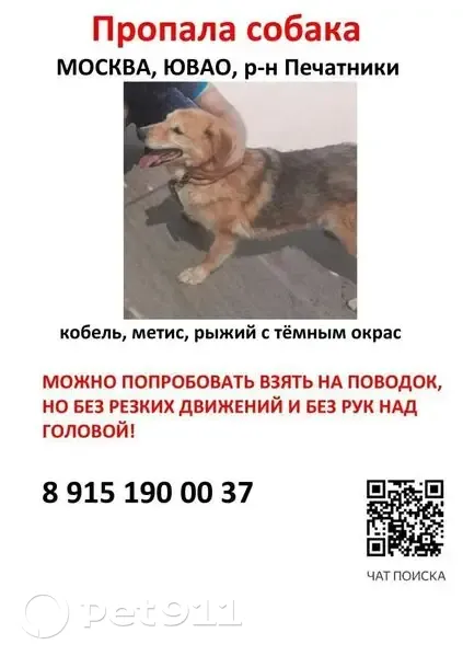 Сорвался с поводком рулеткой. Окрас рыжий с б...