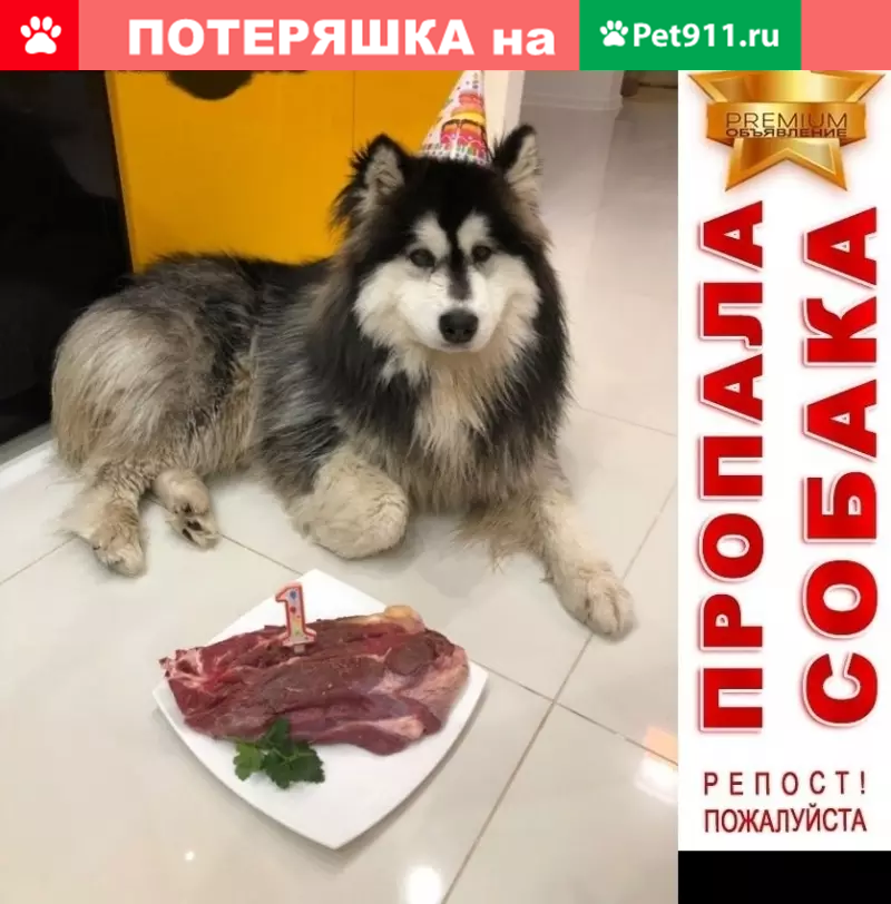 Пропала собака. Хаски, кобель. Кличка Вольт....