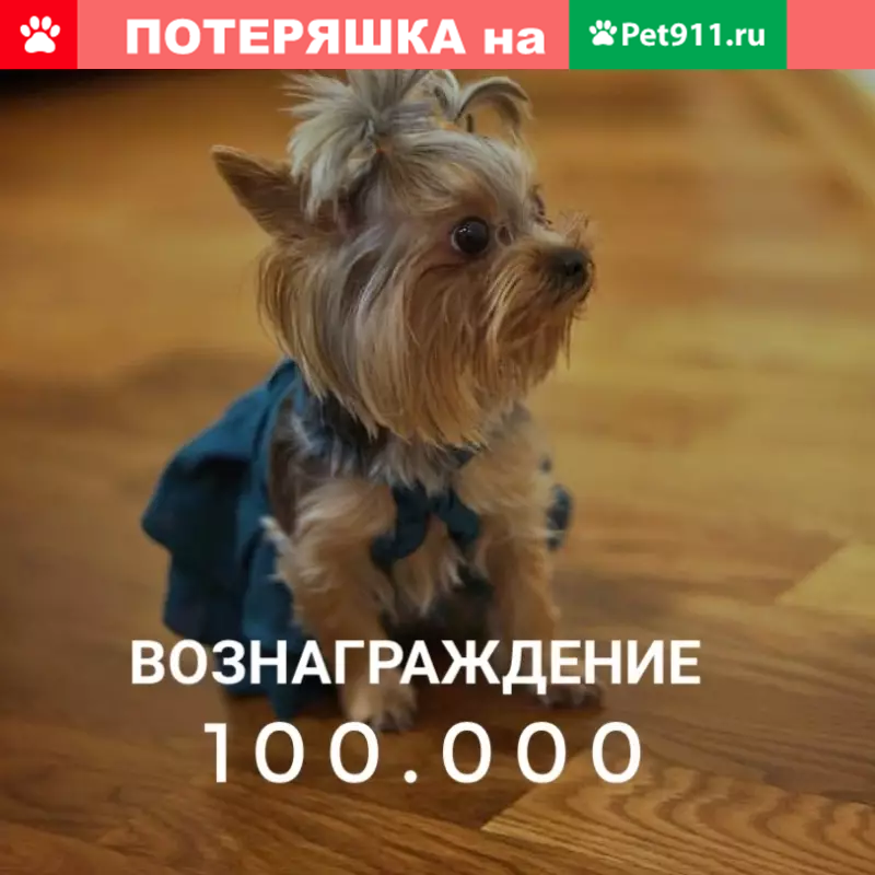 Собаки потеряшки, Москва, фото: Потеряшка йорк Лили в Ступинском районе, вознаграждение 100000