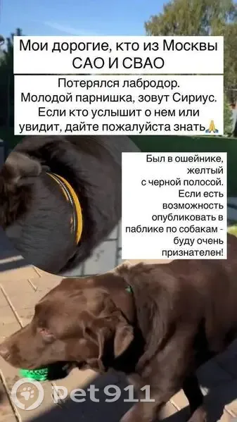 Лабрадор шоколадного цвета, ошейник желтый с...