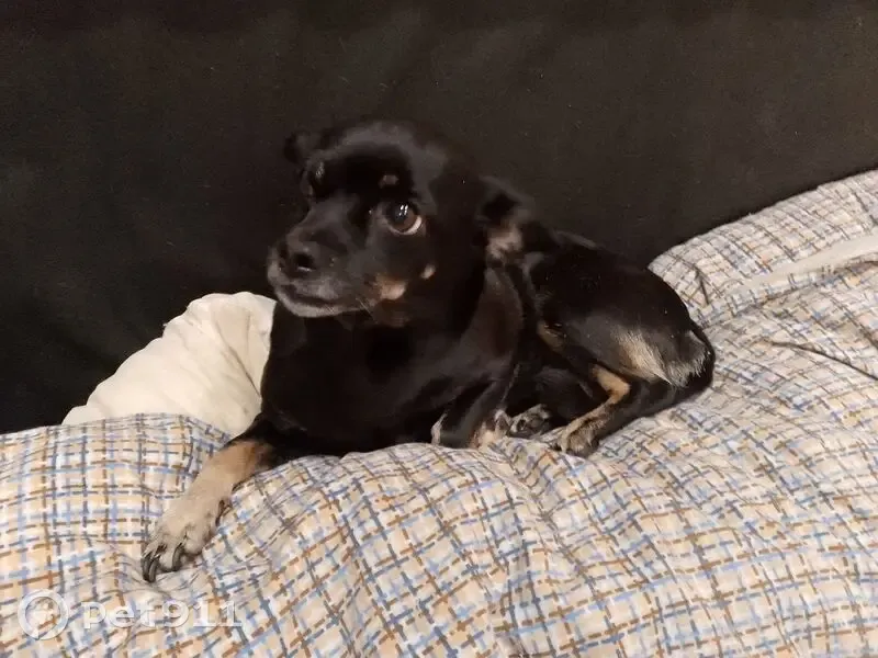 Собака черная, "пальтишко" красное. Есть ошей...