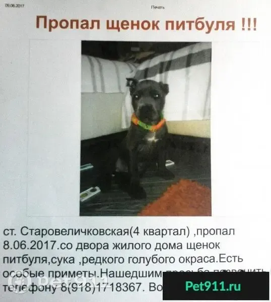 Пропал щенок питбуля на ст.Ста...