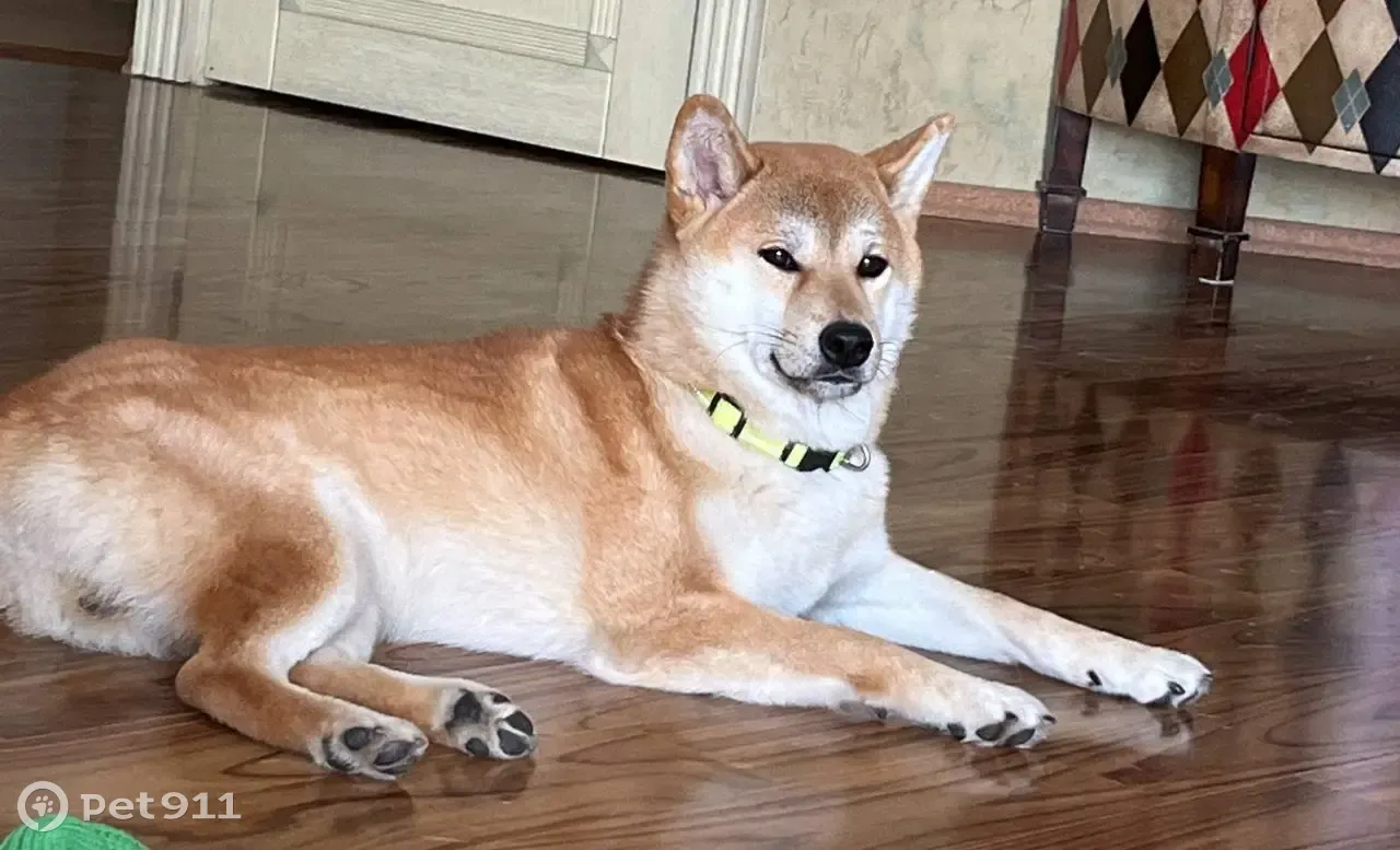 Кобель, рыже-белый сиба-ину. Очень пугливый....