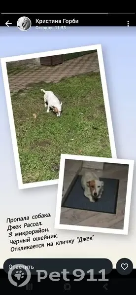 Пропала собака породы джек рассел.08.01.2026...
