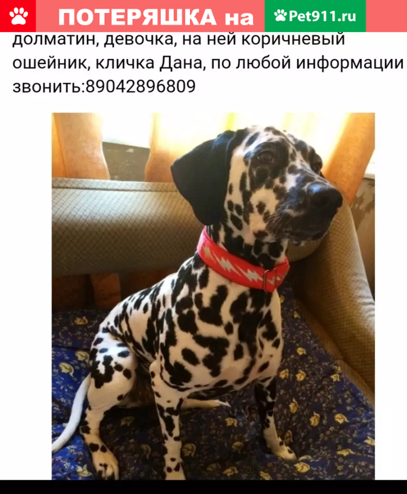 Собаки потеряшки, Липецк, фото: Потеряшка девочка Дана, далматинец в г. Липецк!