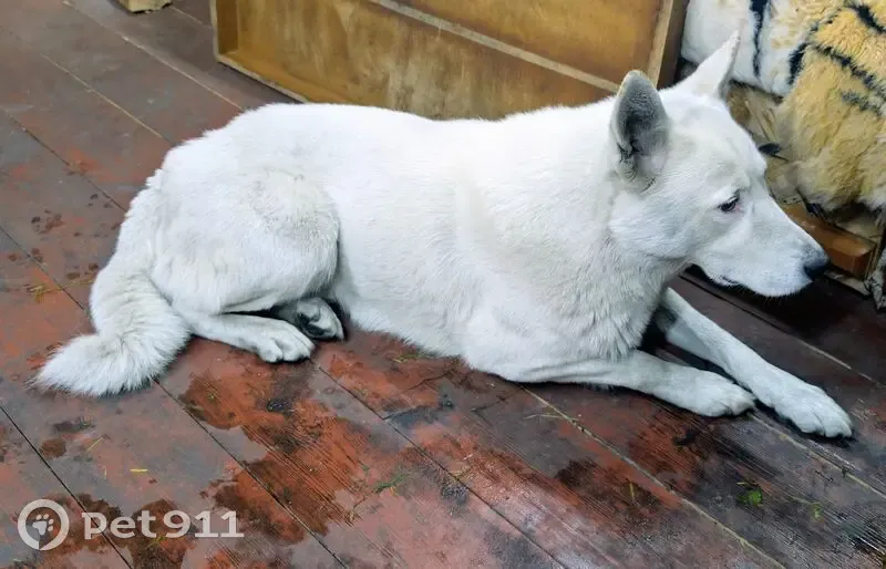 Собаки потеряшки, Соликамский муниципальный округ, фото: Потеряшка белая лайка у Осокино, Пермский край