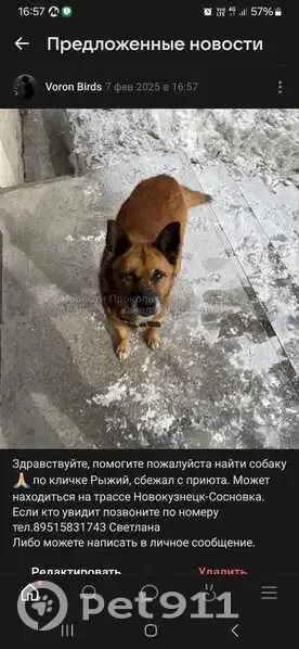 Пропала собака, кличка Рыжий, сбежала с приют...