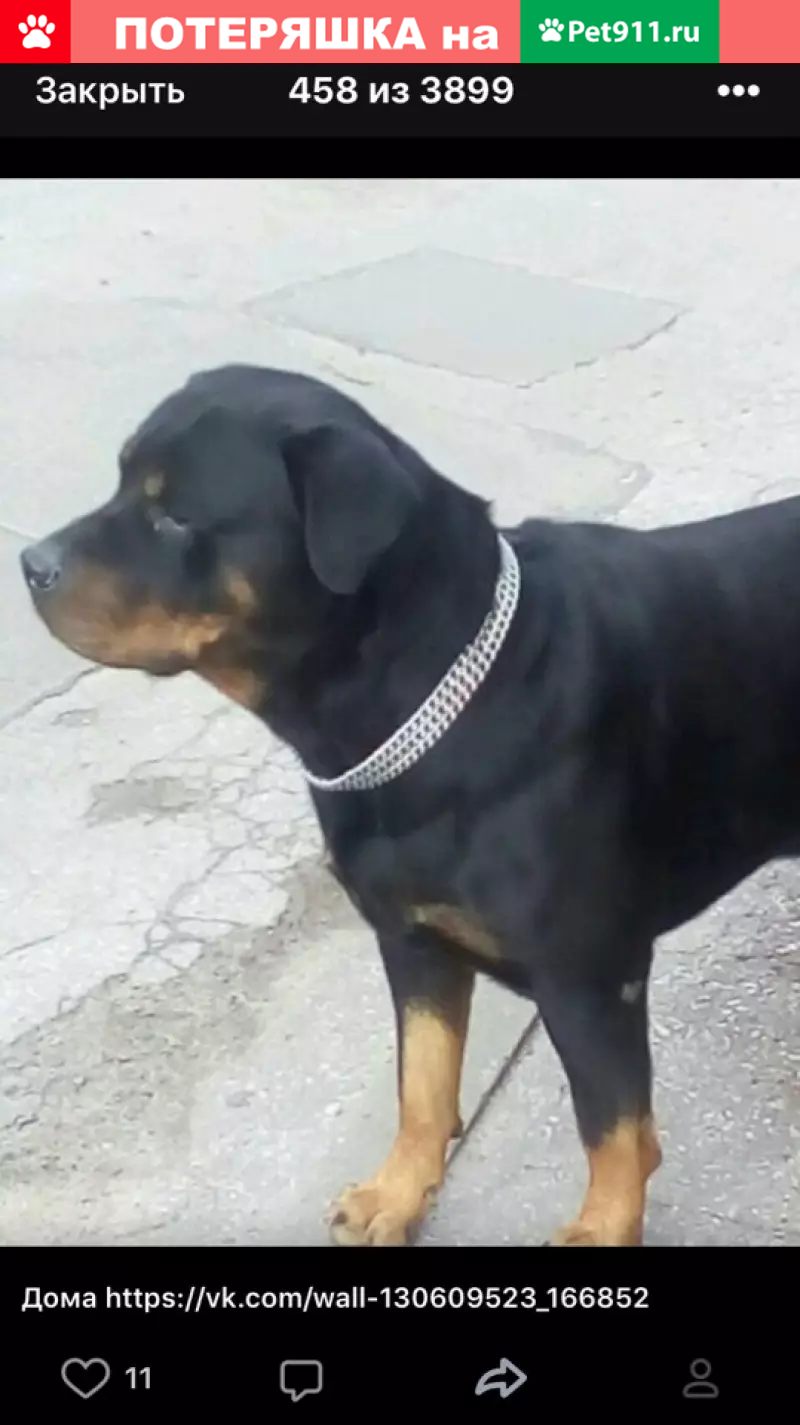 Пропал ротвейлер кобель сегодня вечером на ул...