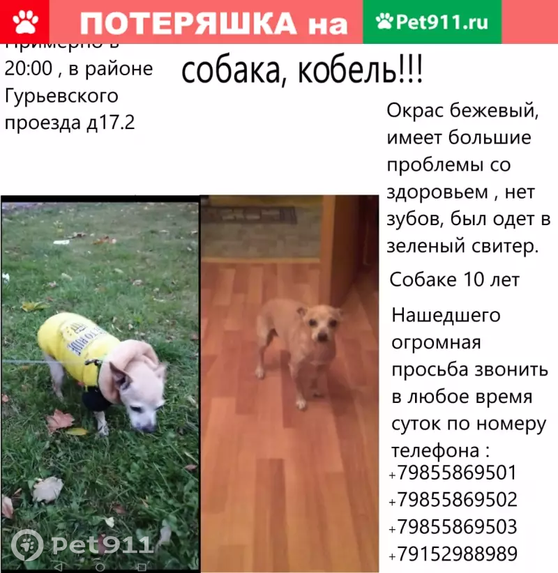Собаки потеряшки, Москва, фото: Потеряшка собака возрастом 10 лет по адресу Гурьевский проезд дом. 17.к2 в Москве