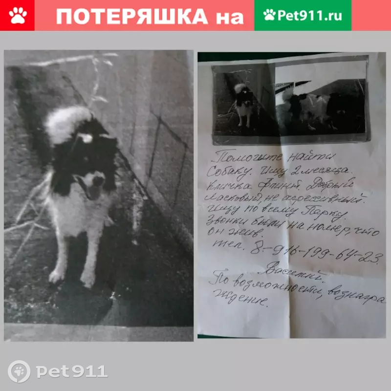 МОСКВА! . ПРОПАЛА СОБАКА - НАЙДЕНА СОБАКА...