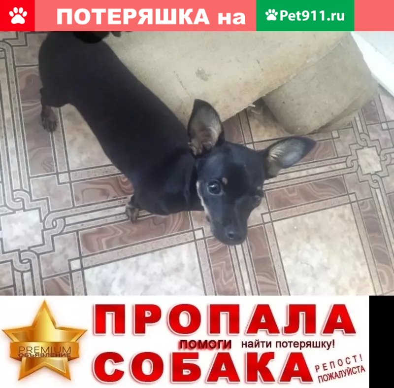 Потерялась собака цвергпинчер, кабель 4 года...