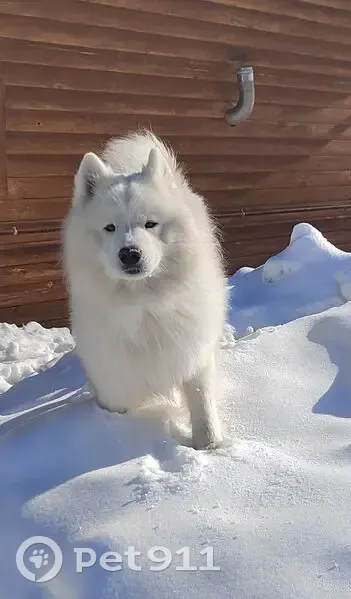 Самоед белый мальчик. Добрый. Подходит к людя...