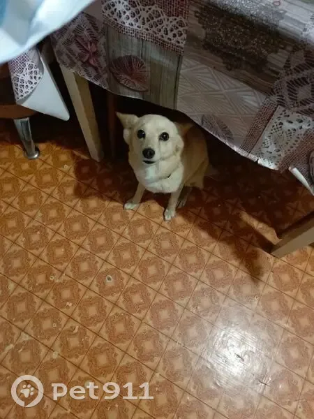 Собака небольшая, окрас светло-палевый, ушки...