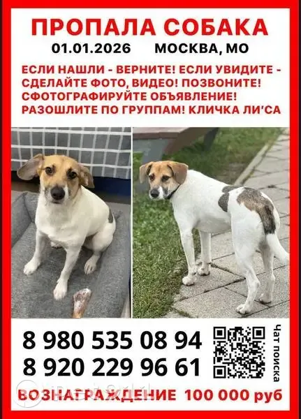 ПРОПАЛА СОБАКА Ли’са! Москва, район Сколково...