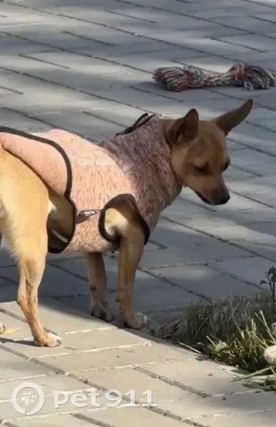 Собаки потеряшки, Москва, фото: Потеряшка собака, женский пол, улица Введенского, Москва - бежевая с красной шлейкой