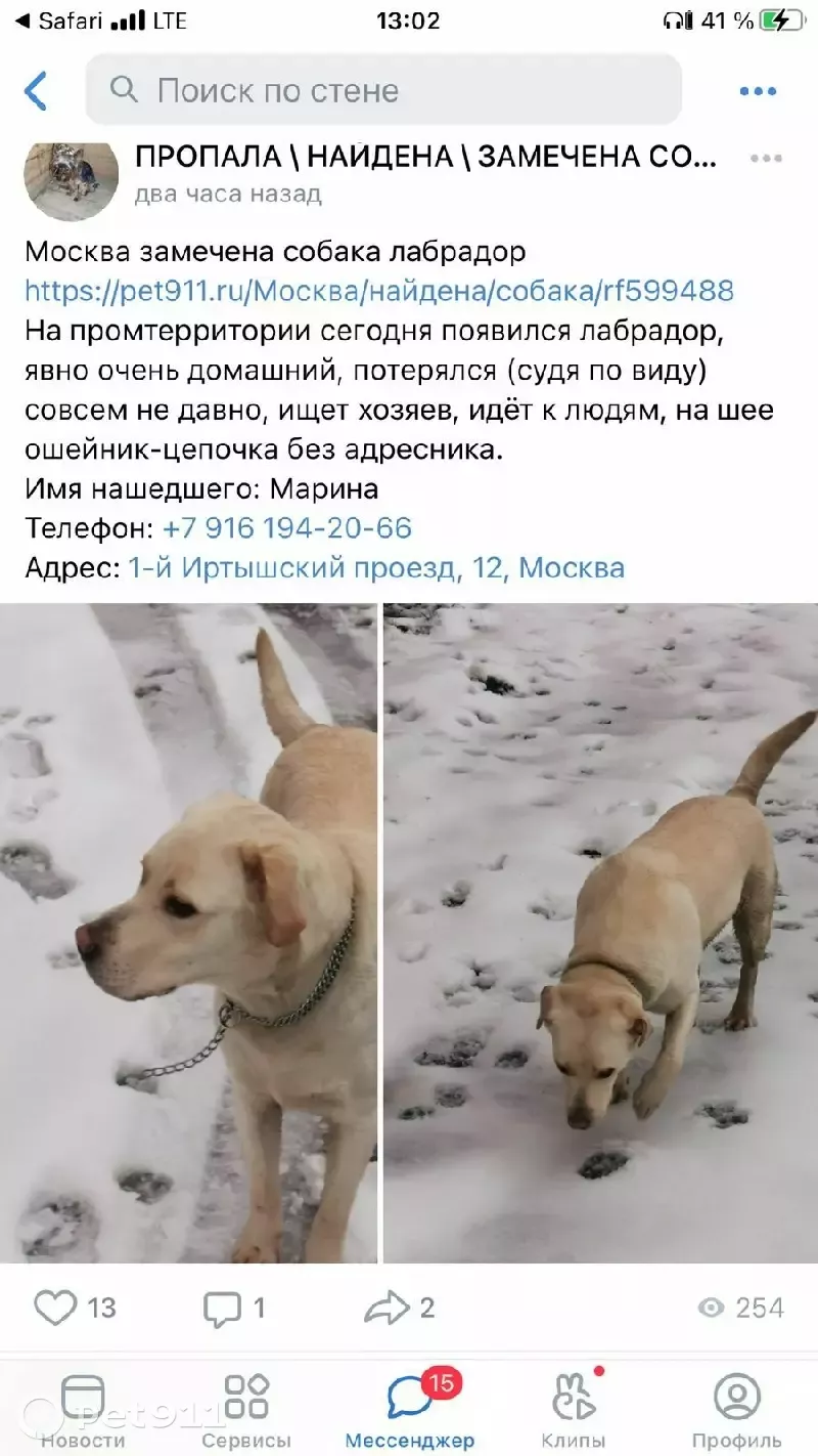 Питомец найден