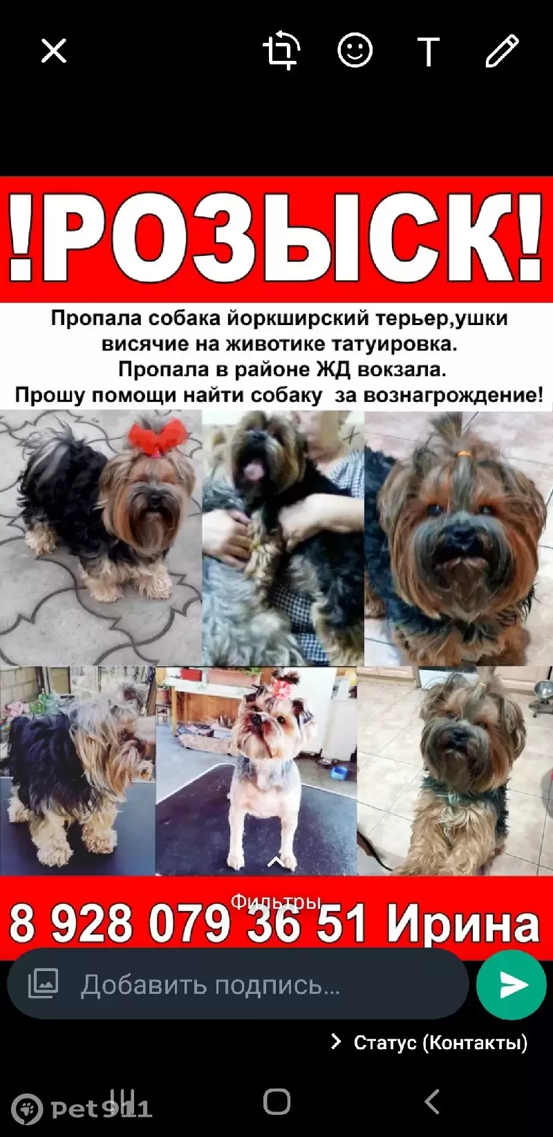 Ищю собаку ийокшоркий терьер по кличке Эльза...