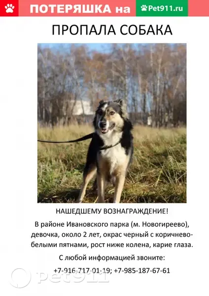 Шелти, кличка Лесси, убежала вчера в Битцевск...