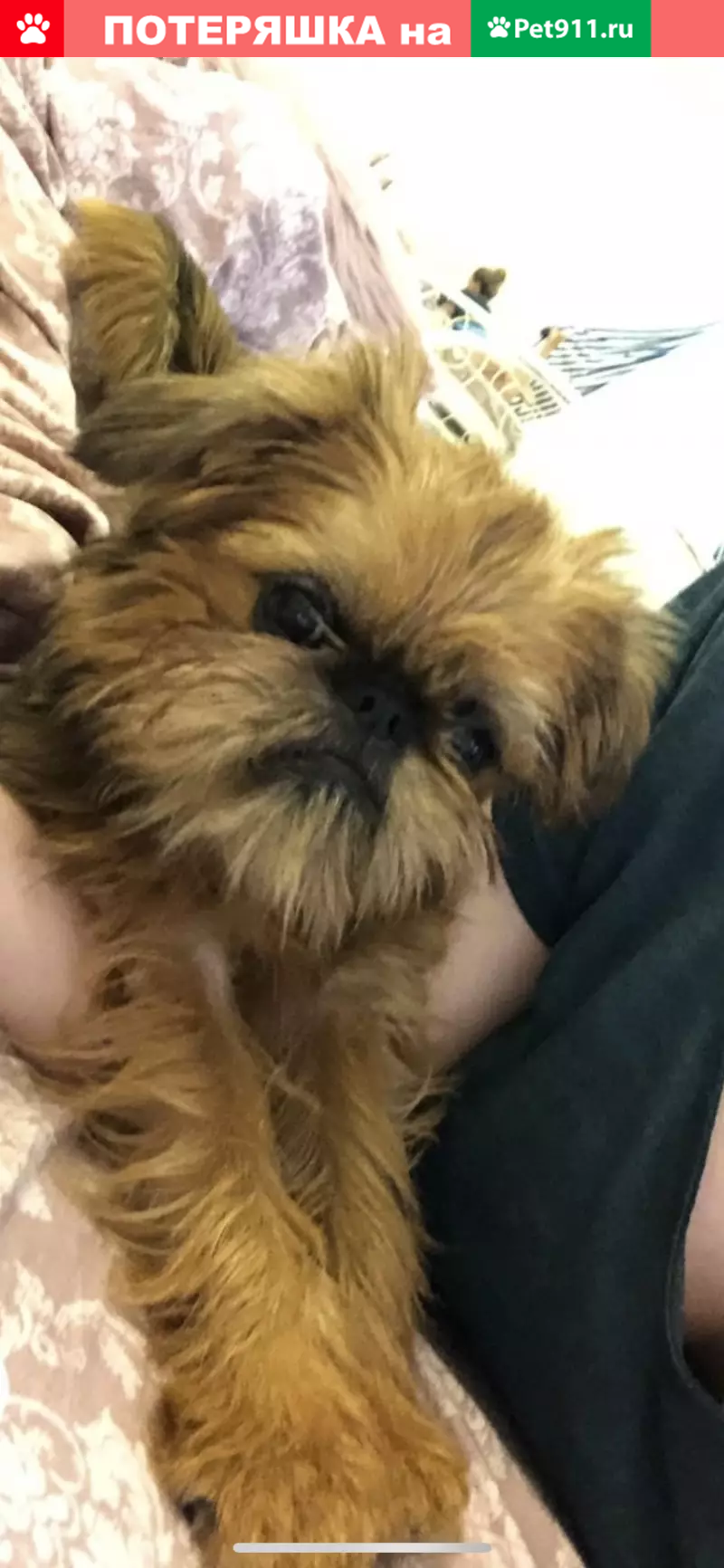 Пропала собака Гриффон рыжего цвета, маленька...