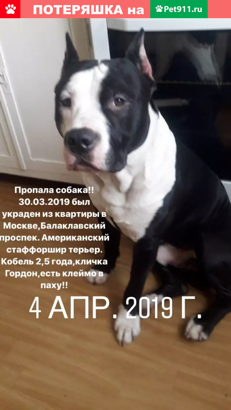 Собаки потеряшки, Москва, фото: Потеряшка американский стаффордшир терьер Гордон, Москва, Балаклавский проспект