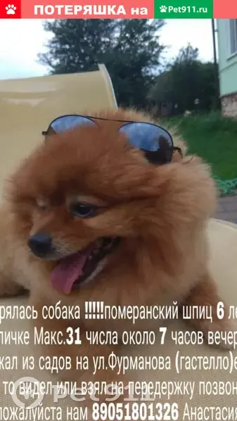 Пропал померанский шпиц Макс,...