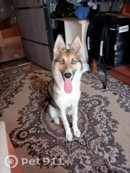 Помесь хаски с дворнягой, голубые глаза, убеж...
