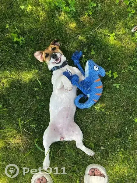 Щенок Джек Рассела терьера,была в синем ошейн...