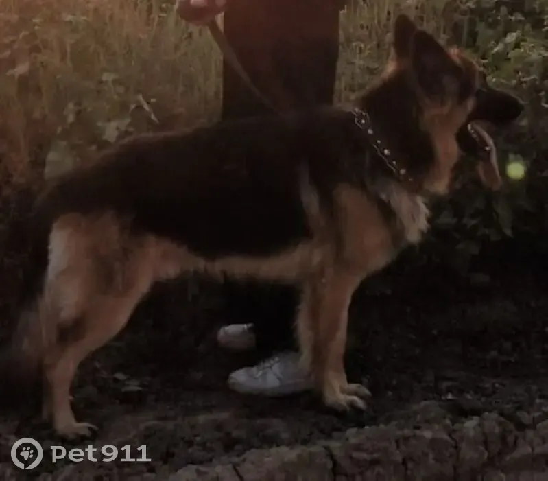 Окрас серо-коричневый, был ошейник, пес боязл...