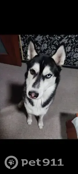 Хаски, мальчик по кличке Сэм, чёрно-белый окр...