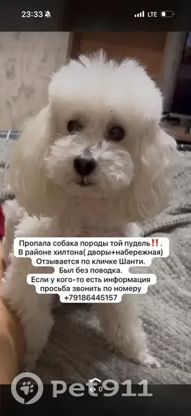 Пропала собака породы белый той пудель. Кличк...