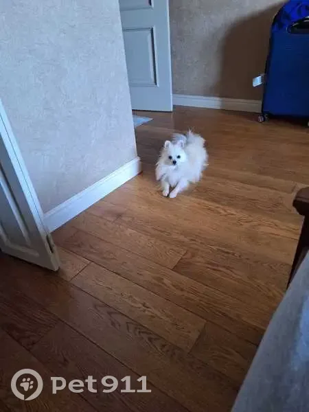 белый шпиц,игривая, небольшая. Убежала при пр...