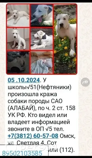 Пропала алабай, Омск, Коммунал...
