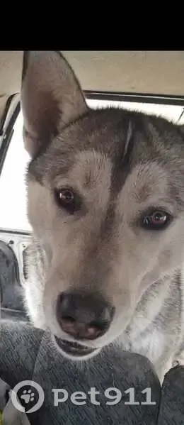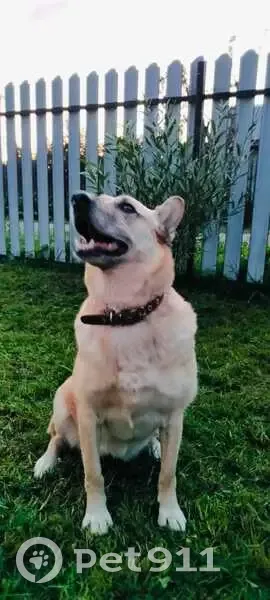 Коричневый ошейник,похожа на лайку, зовут Гер...