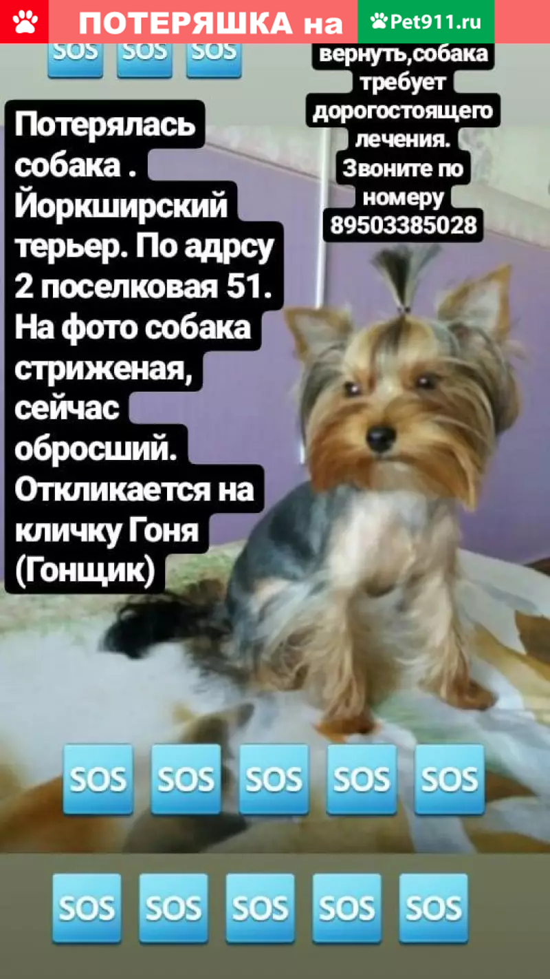 Пожалуйста ПОМОГИТЕ НАЙТИ СОБАКУ. Йоршерский...