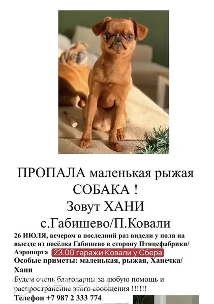 Маленькая рыжая собачка. Отзывается на Хани,...