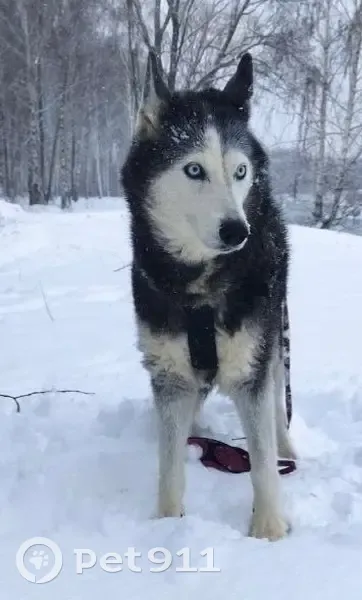 Серый окрас,похож на волка!! На нём ошейник,к...