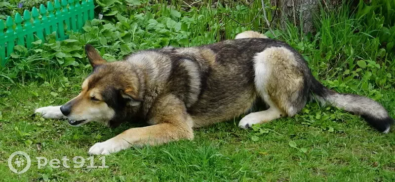 Пёс крупный, беспородный, волчьего окраса. Ис...