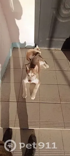 Рыжий хаски, разноглазый. Убежал на прогулке.