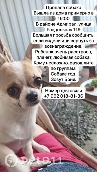 Пропала собака, ул. Лизы Чайки...