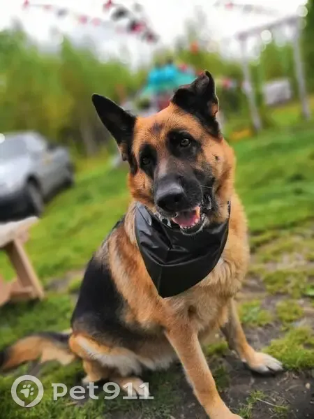 Крупный, окрас черно-подпалый. Дети забыли за...