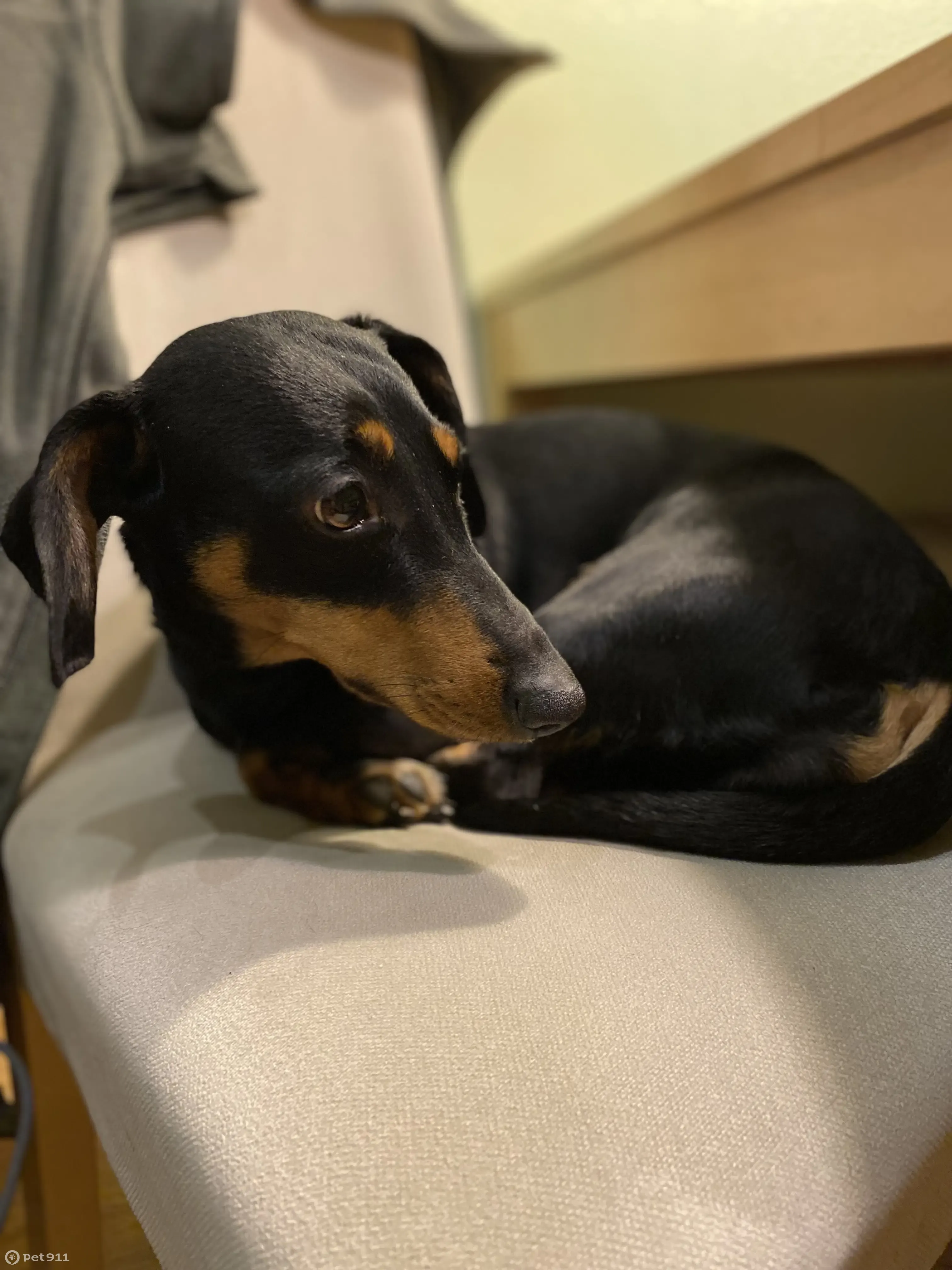 Собаки потеряшки, Санкт-Петербург, фото: Потеряшка черная такса на улице Солдата Корзуна, СПб.