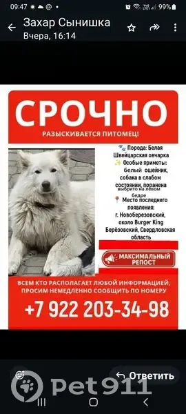 Потеря домашнего животного, особенно такой любимой породы, как Белая швейцарская овчарка, может стать настоящей трагедией для владельцев. Не стоит паниковать, легко поддаваясь эмоциям, важно действовать быстро и грамотно. В нашем сервисе вы найдете полезные рекомендации, которые помогут вам в поиске вашего любимца. Мы собрали информацию о том, что нужно делать в такой ситуации и как правильно составить объявление о пропаже. Если вы ищете белую швейцарскую овчарку, мы готовы помочь вам в этом сложном процессе.